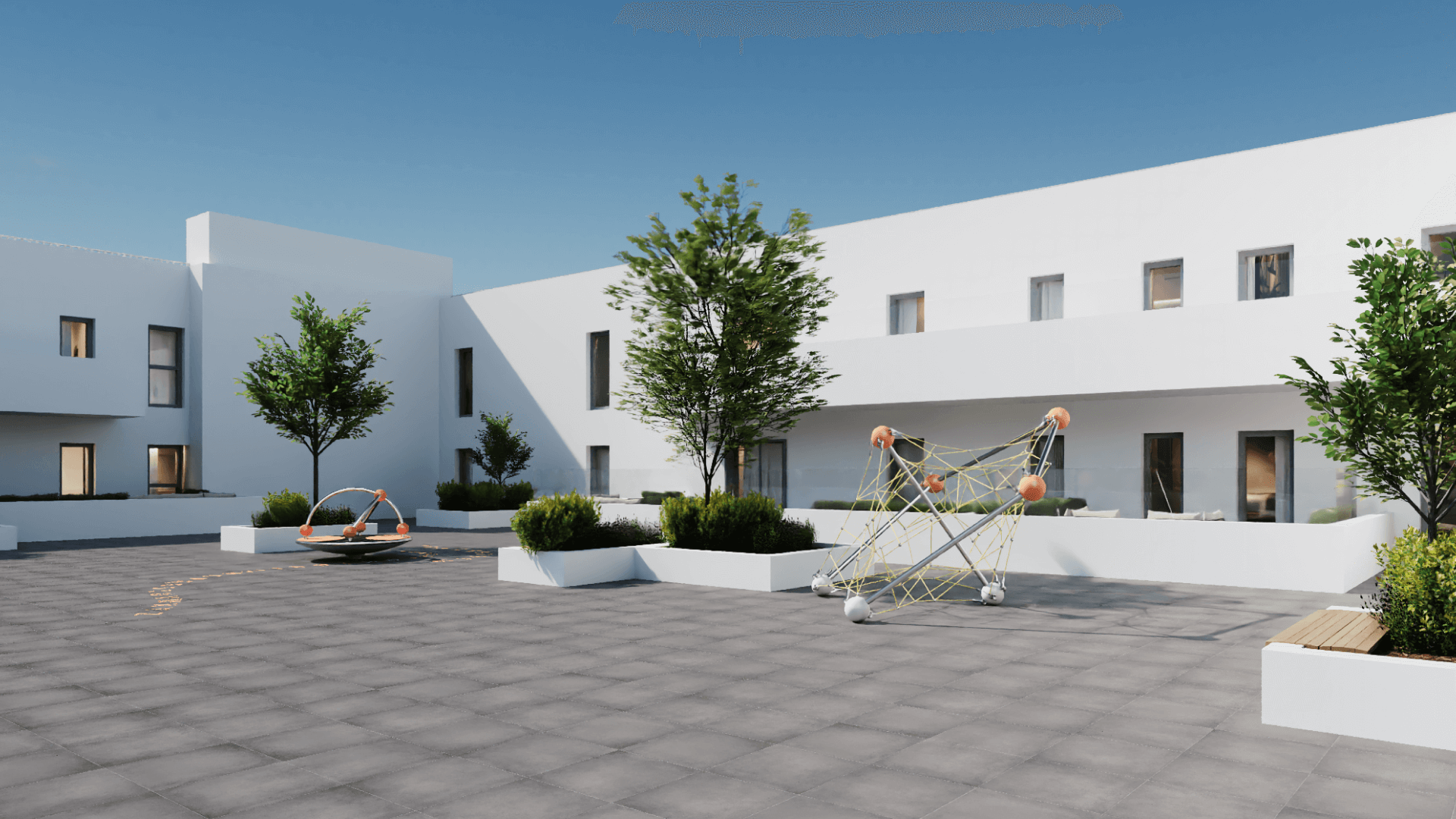 A arquitetura do Muralha Setúbal Residences combina elegância contemporânea e funcionalidade, com detalhes que criam ambientes amplos, luminosos e adaptáveis, perfeitos para o estilo de vida moderno.